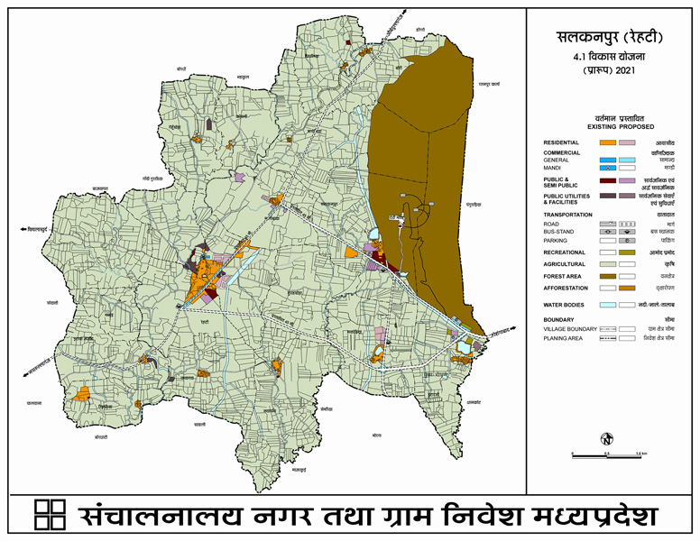 The concept of City Development Plan (CDP) of Salkanpur is entirely different from CDPs being prepared for other towns. The Development Plan seeks to preserve its religious, Tourist, ancient historical temple and heritage fervour. Alongwith this, the Development Plan envisages suitable provision for development of suitable festival site to organize religious functions and suitable places for the convenience of the visitors, efficient and economic transport structure for tourists and devotees who come here during festival season, alongwith suitable land for residential and commercial use and development of basic service facilities.